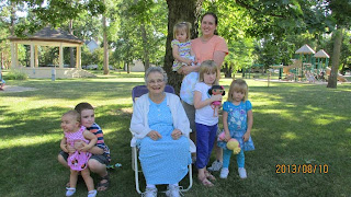 Great Grandma Kelly with all of the attending great grandchildren. And me holding Abby, because she is clingy and doesn't happily go to other people, OR stand there and smile nice.
